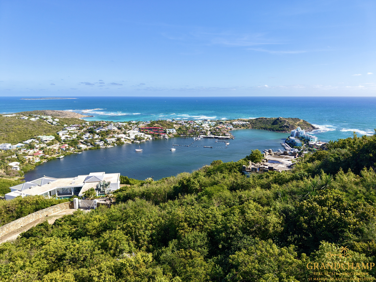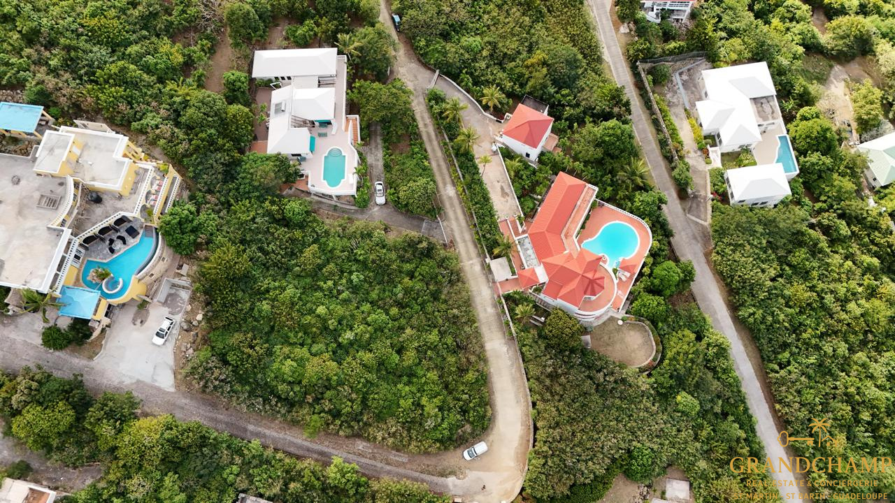 Terrain de 1 460 m², situé sur les hauteurs d’Oyster Pond, côté hollandais, offrant une vue exceptionnelle sur la marina.